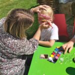Im Anschluss verteilten zwei Kinder essbare Fruchtgummifische als besondere Überraschung an die Gemeinde. Nach dem Gottesdienst startete das Wunschsingen für die Erwachsenen. Die Kinder freuten sich bereits auf die vielen Spielmöglichkeiten, auf das Mal-, Schmink- und Bastelangebot, die rund ums Jugendheim aufgebaut waren. Im Raum des Kindergottesdienstes und im Außenbereich herrschte eine fröhliche Stimmung und großes Interesse an den Aktivitäten. Ob an Sackhüpfen, Schwungtuchspiele, Denk- und Zielwerfspiele, Spiegelmalerei oder Becherspiele, unsere Kinder und deren Eltern fanden Freude an den vielseitigen Aktivitäten.