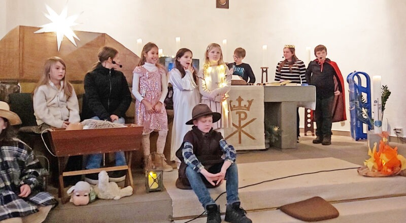 Wie wunderschön war es, dem Krippenspiel der Kinder des Kindergottesdienstes am Heiligabend zuzusehen. Die Mitwirkenden stellten die Reise nach Bethlehem, die Suche nach einer Unterkunft, die Geburt im Stall, die Verkündung an die Hirten durch die Engel sowie die Deutungen und den Besuch der drei Könige anschaulich und großartig dar.